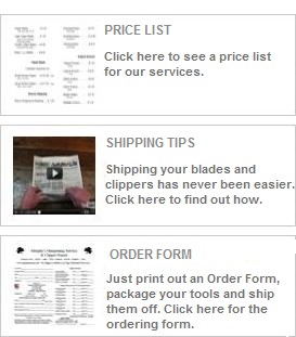 All clipper blades are cleaned, sharpened, oiled and individually packaged for your convenience. Shears and surgical scissors are cleaned, adjusted if needed and sharpened with the appropriate edge.
